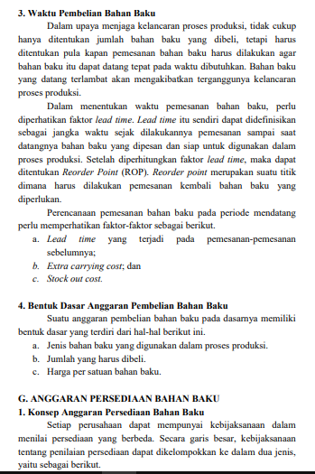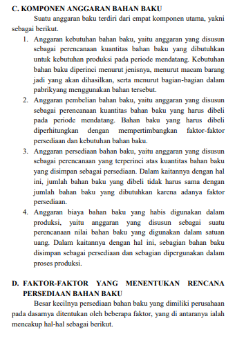 7. Dalam penyusunan anggaran bahan baku, ada beberapa komponen utama yang harus diperhatikan agar perencanaan produksi dan biaya dapat berjalan efektif, yaitu: